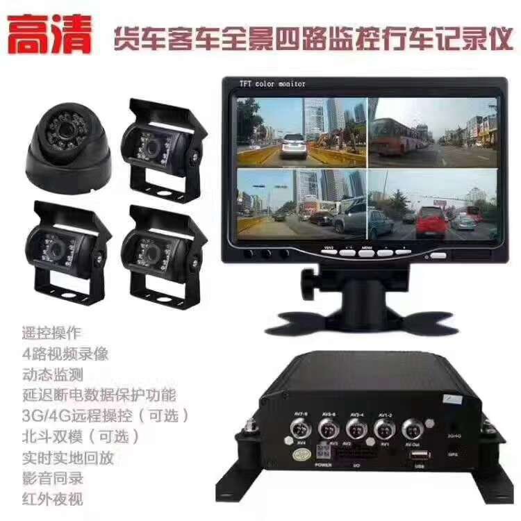 貨車本地視頻監(jiān)控設備 高清貨車客車全景四路監(jiān)控行車記錄儀 遙控操作 4路視頻錄像 動態(tài)監(jiān)測 延遲斷電數據保護功能 3G/4G遠程操控(可選) 北斗雙模(可選) 實時實地回放 影音同錄 紅外夜視